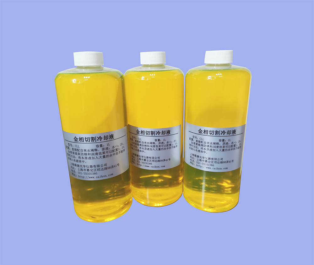 该产品专门针对金相样品的砂轮切割而研制,具有冷却、润滑、防锈性能;切割时,降低样品温度,以减少样品受到热影响;对样品产生清洗和防锈作用;增加润滑性能,提高样品的表面光洁度,可同时提高切割片的寿命;防止切割机被腐蚀;该产品无毒、无味、无污染,为环保型安全产品;溶液清澈透亮,不含矿物油和亚硝酸盐。