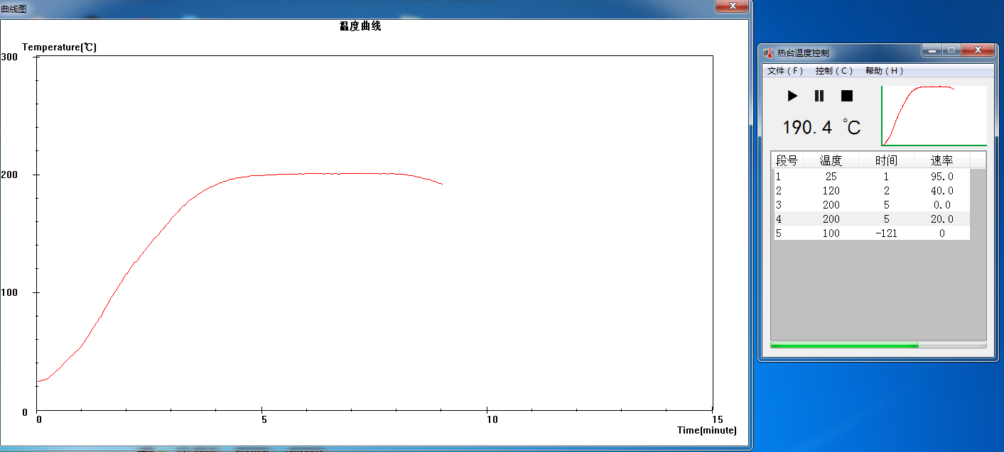3、温度控制:将数据列表中的分段温度依次写入到温控设备中,以便控制热台温度。