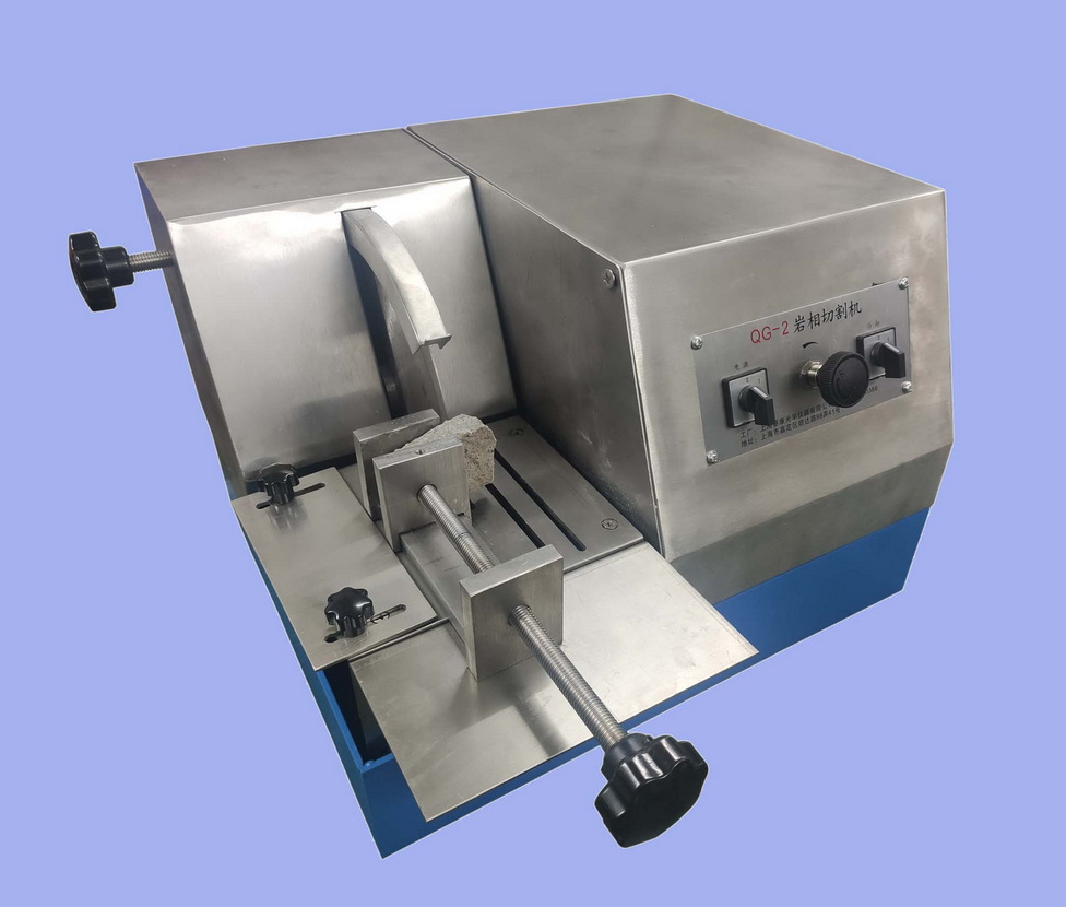 在试样制备过程中,试样材料的切割是试样制备的首道重要工序。QG-2型切割机适用于一般岩相材料。为保证能在安全状态下切取试样,本机采用全封闭双罩壳结构和快速夹紧装置,并有冷却水箱,可使用配制好的冷却液作循环使用。为延长该设备的使用寿命和操作维护保养等方便,该机的罩壳、砂轮轴套、钳口和工作台面等主要零部件均采用不锈钢材料制成,是切割试样的理想设备。