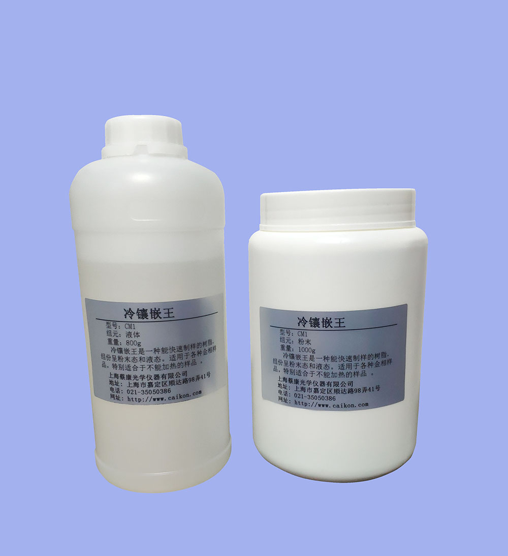 冷镶嵌王CM1:—真正的“三无”产品:无须加热、无须加压、无须镶嵌机的镶嵌料。不到十分钟即可镶嵌完毕,快速方便。适用于不能被加热样品的镶嵌及无镶嵌机的场所,节省设备投资和能耗,同时您将再也不会担心样品因回火而软化或者因加热而发生内部组织变化。